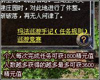 ·玛法巡游任务,每天可有五次免费领取的机会,每次可获得精元或经验奖励,组队前往可获得更多额外奖励。每个玛法旅行家都会撰写巡游手记,集齐9本可兑换1万点精元值、500万经验、50万内功经验。 1、玩家每天可免费完成一次玛法九大名胜巡游任务,如果想继续完成该任务,则必须缴纳一定的金刚石。 2、每天的0:00、12:00、20:00、22:00,玩家可以在庄园(111,118)的玛法旅行者处报名参加竞速赛。在半小时内完成玛法巡游任务的玩家能够获得额外的奖励,第一名还有更多的奖励。 3、玩家从边界村的天下第一关前往雷炎双桥时,在规定时间内到达才能够获得奖励。 4、玩家想通过桃园之门的巡游,必须是组队前往。 5、组队人越多获得的精元或经验奖励也越多。 |